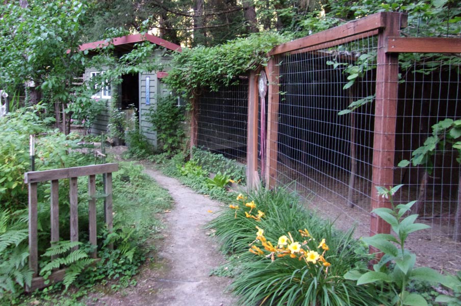 The garden you will see pictured throughout this site is on 5 mostly wooded acres in southern Oregon. I moved here with my son Bryon, in late 2007. The soil here is decomposed granite, which makes the most amazing paths – but needs a huge amount of help to grow even a decent weed! We pretty much started from scratch here, tucking our garden into the forest that surrounds us.