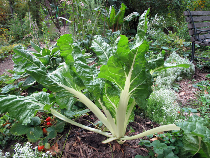 08/28/201508/28/2015Barb Allen VolunteerSwissChard Volunteer Swiss chard, strawberries, sweet alyssum and hosta