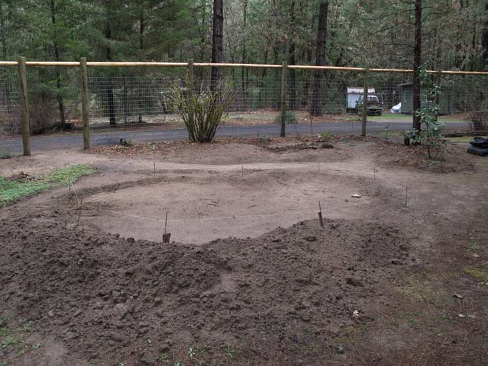 Because it will get runoff from the driveway during winter rains, an overflow had to be planned in as well as an “in-flow”.